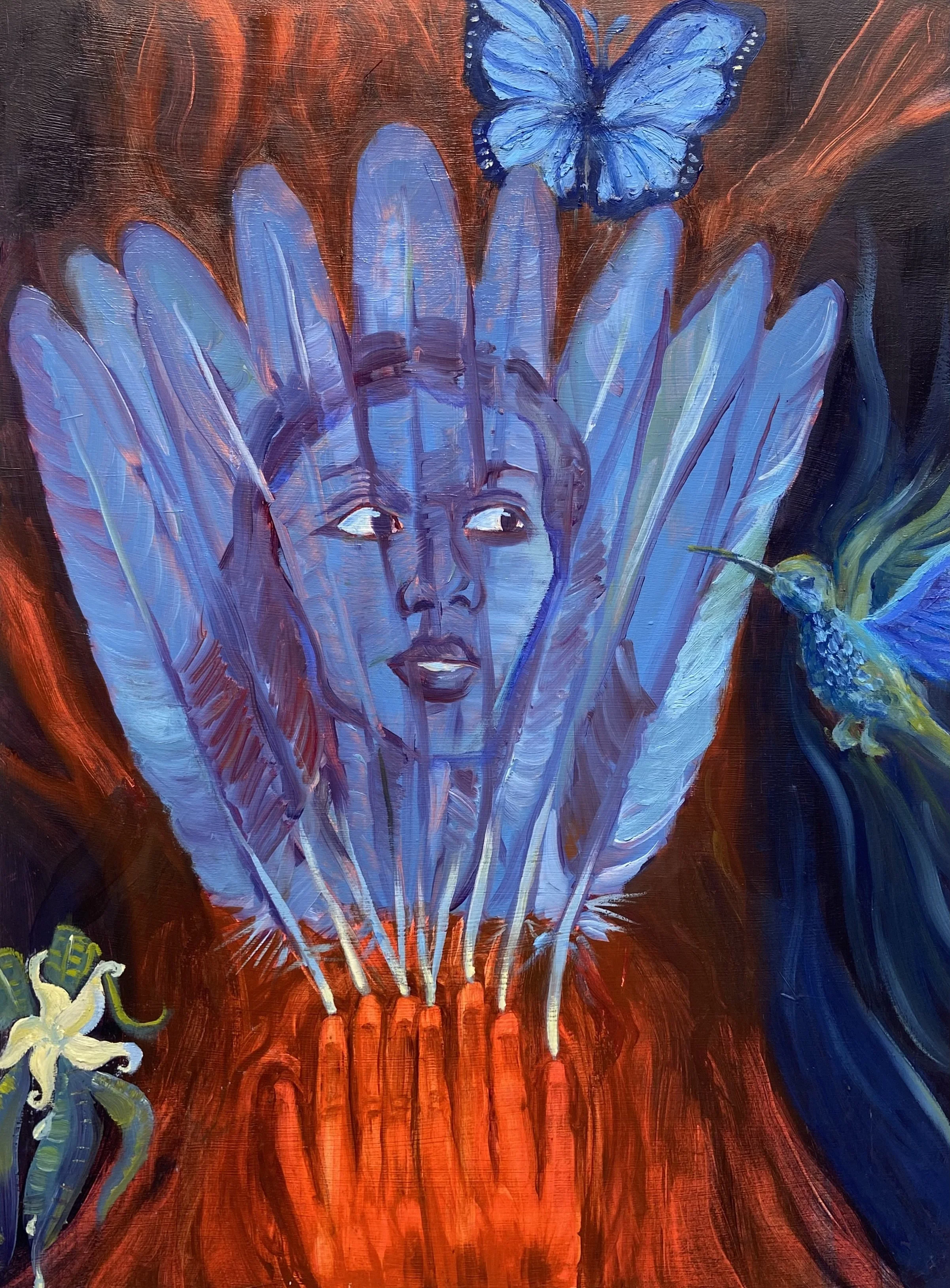 Fingertip Feathers, 12 x 16 in, oil paint on panel